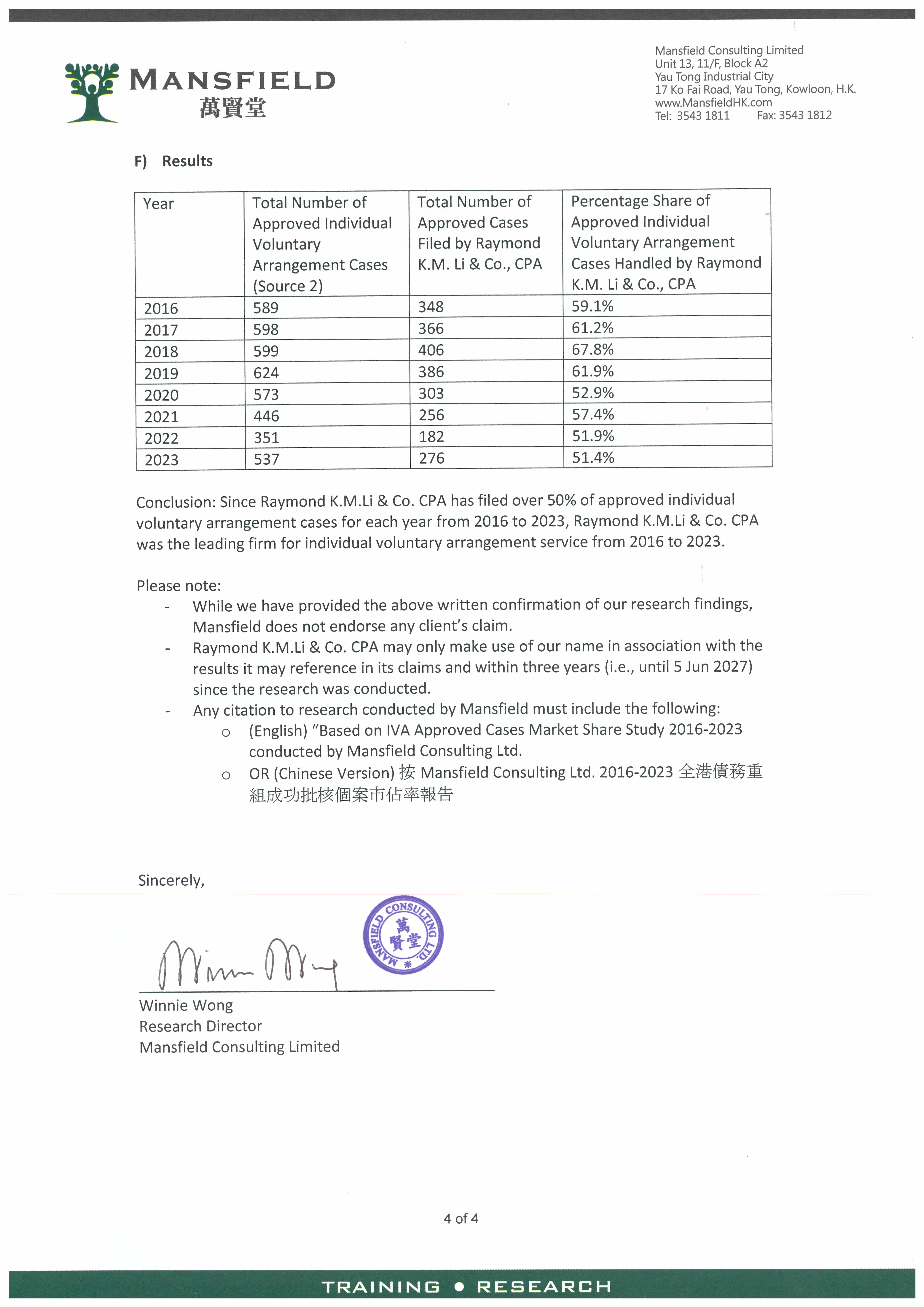 *按Mansfield Consulting Ltd 2016-2023全港債務重組成功批核個案市場佔有率報告